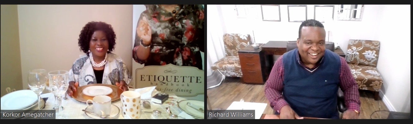 "Miss Korkor, I was amazed at how knowledgeable you are about dining etiquette. The place setting you used for the first lesson was very beautiful. The information you gave me (everything—from sitting elegantly to cutting food properly) was exactly what I needed to learn. With this training, I am certain I will soon be ready to dine with kings. Thank you, and I look forward to learning more."